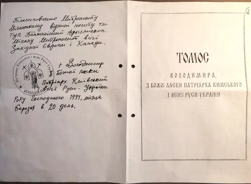 На підставі рішення Священного Синоду в Києві від 30 грудня 1993 року, невдовзі — 20 березня 1994 року — був виданий історичний Томос про Автономію. Цей документ, скріплений патріаршим підписом і печаткою, надавав європейській місії широкі права самоврядування, а її очільнику — титул Блаженнійшого Митрополита. Цим актом Матір-Церква назавжди визнала право української європейської пастви на власну суверенну структуру.